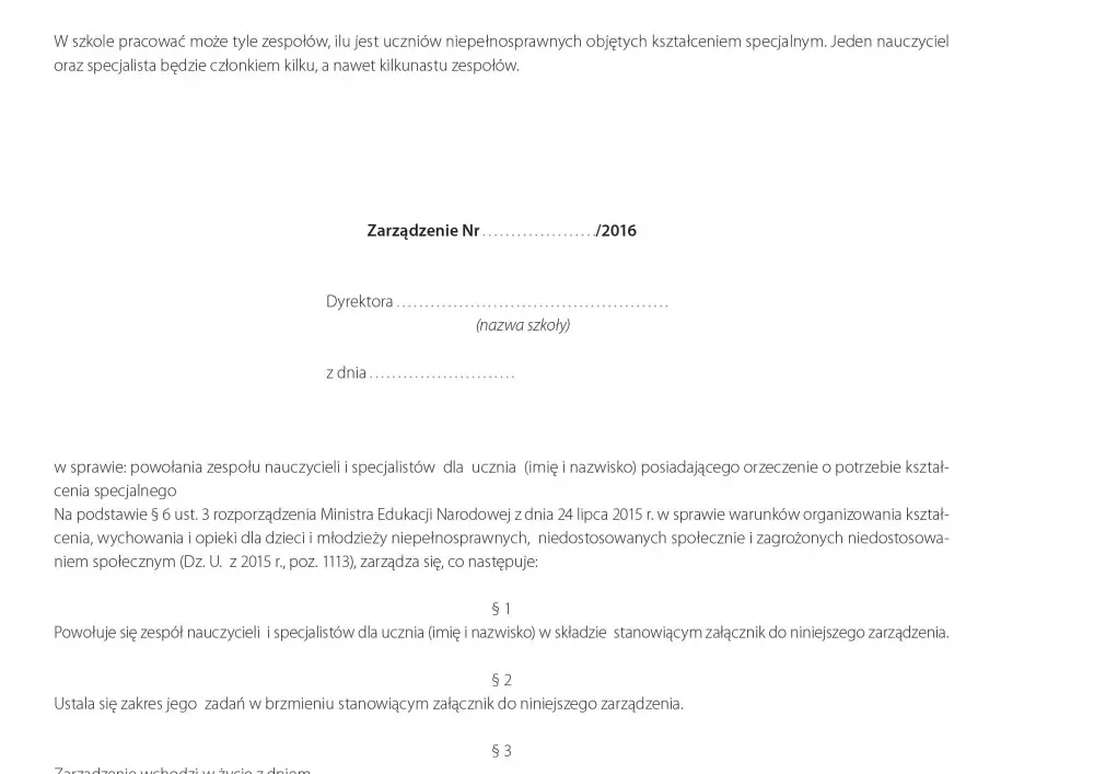 - Powołanie zespołu nauczycieli i specjalistów dla ucznia niepełnosprawnego objętego kształceniem specjalnym,