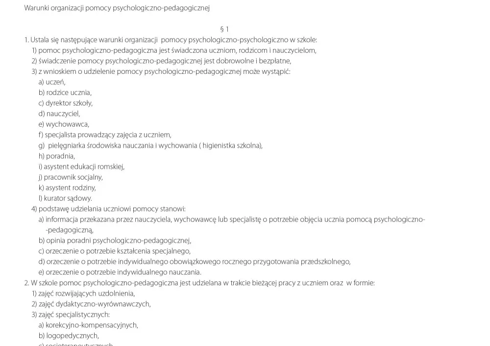 - Procedury organizacji pomocy psychologiczno-pedagogicznej w szkole – analiza przepisów,