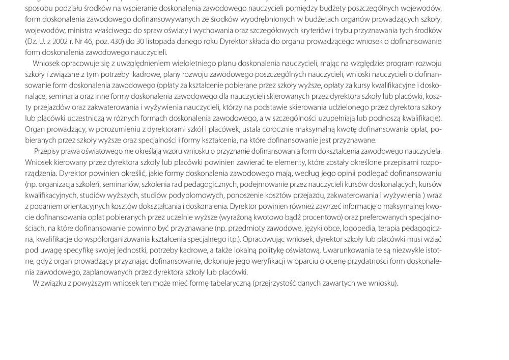 - Wniosek o dofinansowanie doskonalenia nauczyciela – organizacji szkolenia dla nauczycieli, seminariów, kursów kwalifikacyjnych itp.),