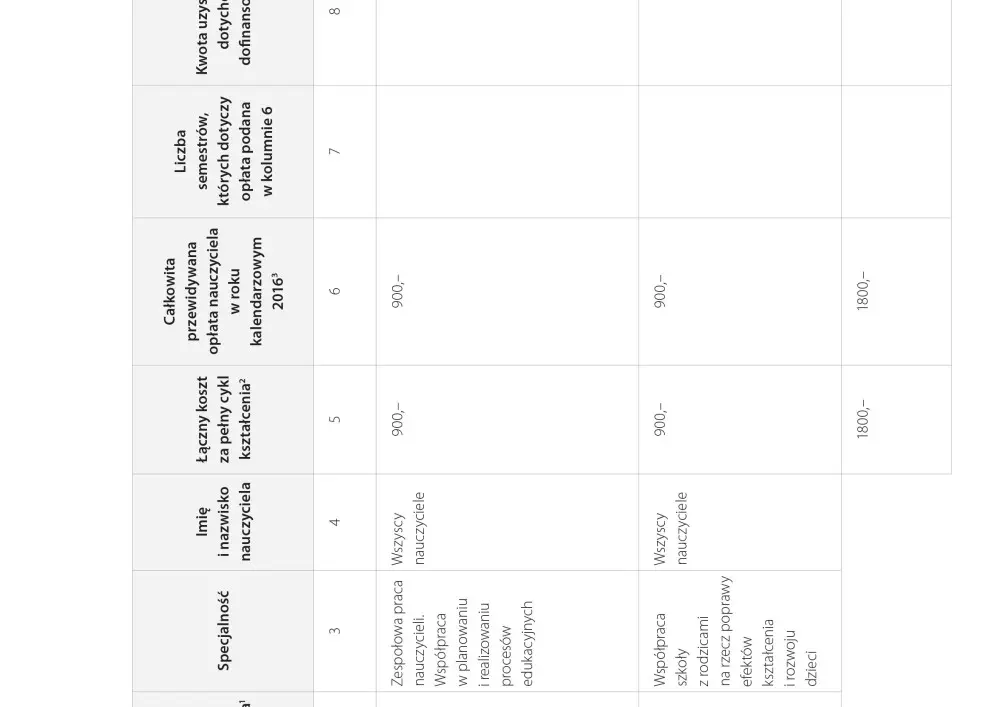 Przykładowy projekt planu dofinansowania doskonalenia nauczycieli na rok 2016, z uwzględnieniem studiów podyplomowych, studiów uzupełniających magisterskich, studiów licencjackich, kursów kwalifikacyjnych, kursów doskonalących i szkoleń dla nauczycieli,