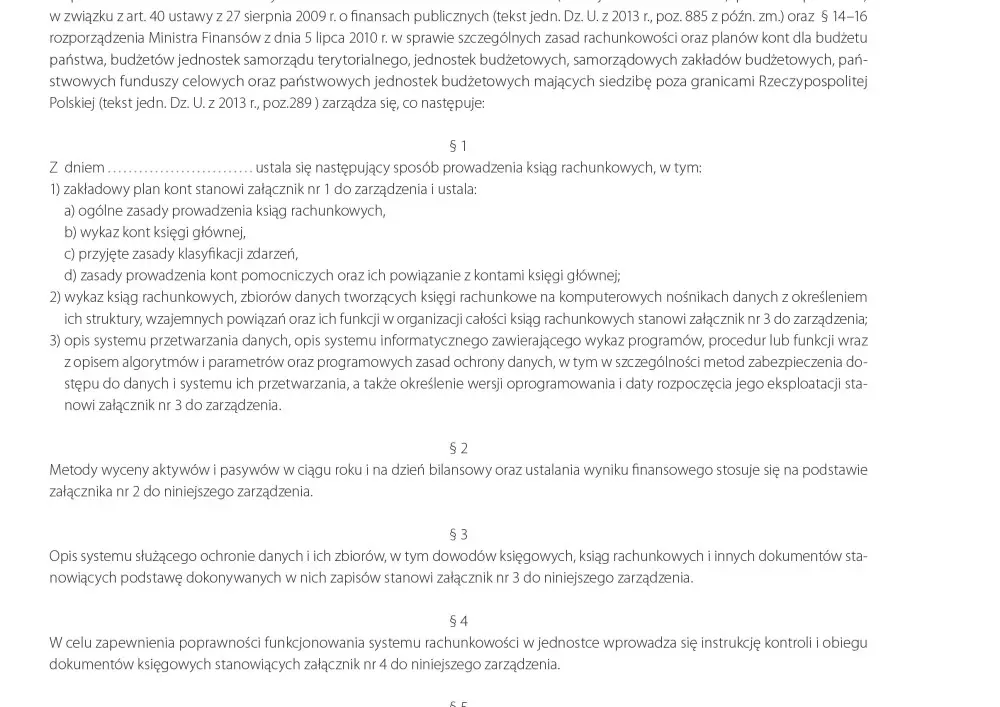 Zarządzenie Dyrektora Szkoły w sprawie ustalenia dokumentacji przyjętych zasad (polityki) rachunkowości.