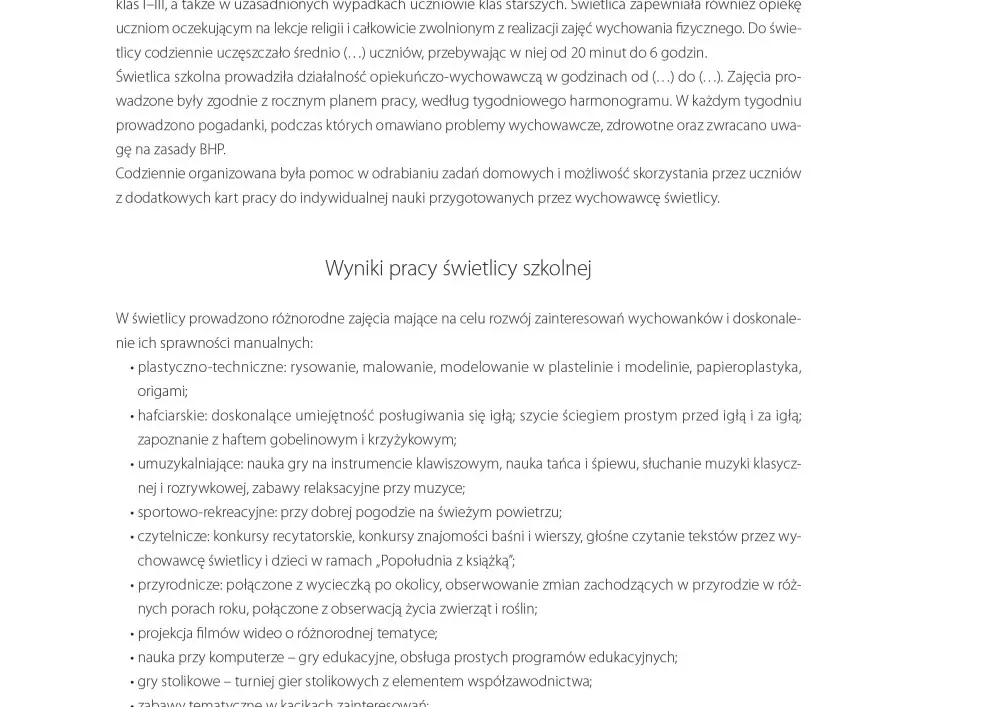 W tym miesiącu w dziale „Narzędziownia” przekazujemy Państwu wzorcowe sprawozdanie z nadzoru pedagogicznego z działalności świetlicy szkolnej i z pracy pedagoga szkolnego, zaś w rubryce „Z praktyki szkolnej” przekonujemy, że wyposażenie świetlicy szkolnej ma duży wpływ na wszechstronny rozwój uczniów.