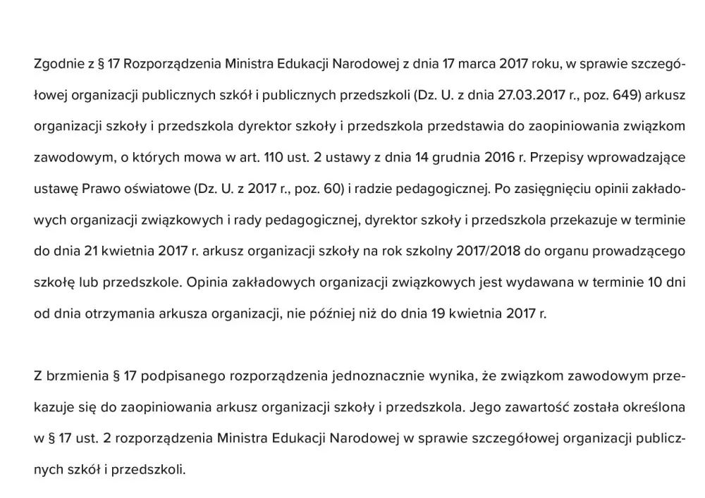 - Opinia rady pedagogicznej w sprawie organizacji pracy szkoły określonej w arkuszu organizacji szkoły,