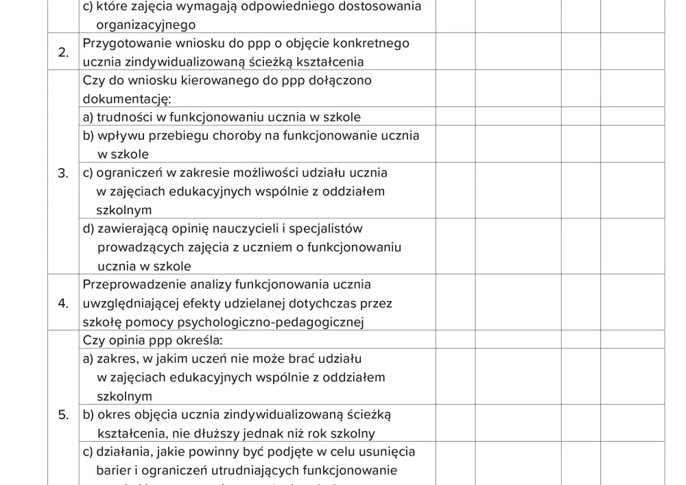 - Analiza prawidłowości procedury objęcia ucznia zindywidualizowaną ścieżką kształcenia,