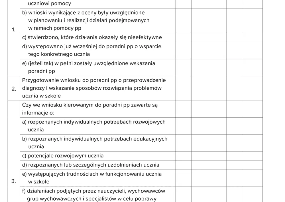 - Analiza wniosku do poradni psychologiczno-pedagogicznej o przeprowadzenie diagnozy ucznia w przypadku braku efektów pomocy psychologiczno-pedagogicznej,