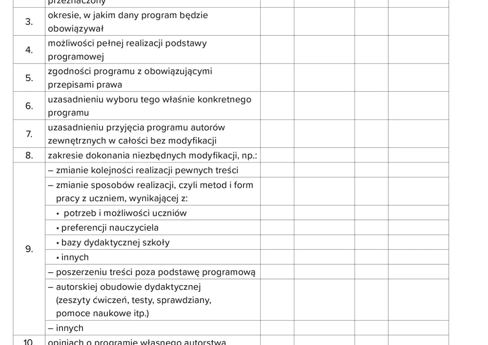 - Zakres informacji zawarty we wniosku nauczyciela o dopuszczenie programu nauczania do użytku w danej szkole,