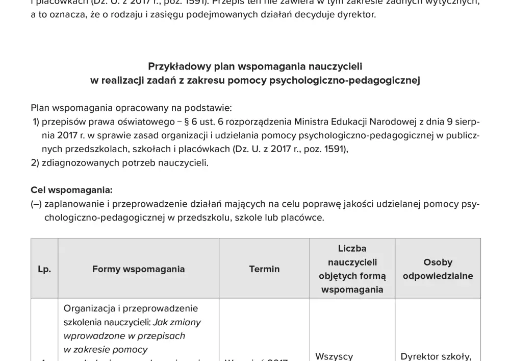 Plan wspomagania nauczycieli w realizacji zadań z zakresu pomocy psychologiczno-pedagogicznej.