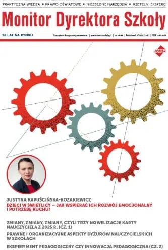 W październikowym wydaniu czasopisma Monitor Dyrektora Szkoły poruszamy temat zarządzania trudną i wypaloną kadrą nauczycielską. W każdej szkole zdarzają się nauczyciele, którzy podważają autorytet dyrektora, nieprzestrzegają standardów zawodowych i negatywnie wpływają na atmosferę w pracy. Choć stanowią niewielki odsetek kadry, tacy pracownicy potrafią skutecznie osłabić morale i zaangażowanie pozostałych członków rady pedagogicznej. Jak reagować na trudne postawy, nie tracąc autorytetu? W jaki sposób dyrektor może utrzymać dyscyplinę, jednocześnie budując szacunek i współpracę w zespole? Zapraszamy do lektury!