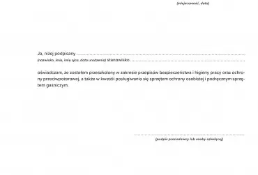 Oswiadczenie oprzeszkoleniu wzakresie BHP