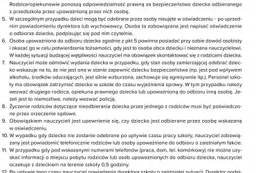 Procedura przyprowadzania iodbierania uczniów zeszkoły podstawowej