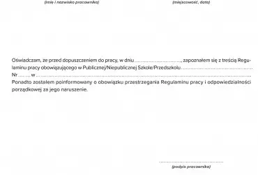 Oświadczenie pracownika ozapoznaniu sie z regulaminem pracy