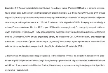 Wniosek do związków zawodowych o wydanie opinii do arkusza organizacji szkoły oraz opinia rady pedagogicznej w sprawie organizacji pracy szkoły określonej w arkuszu organizacji szkoły
